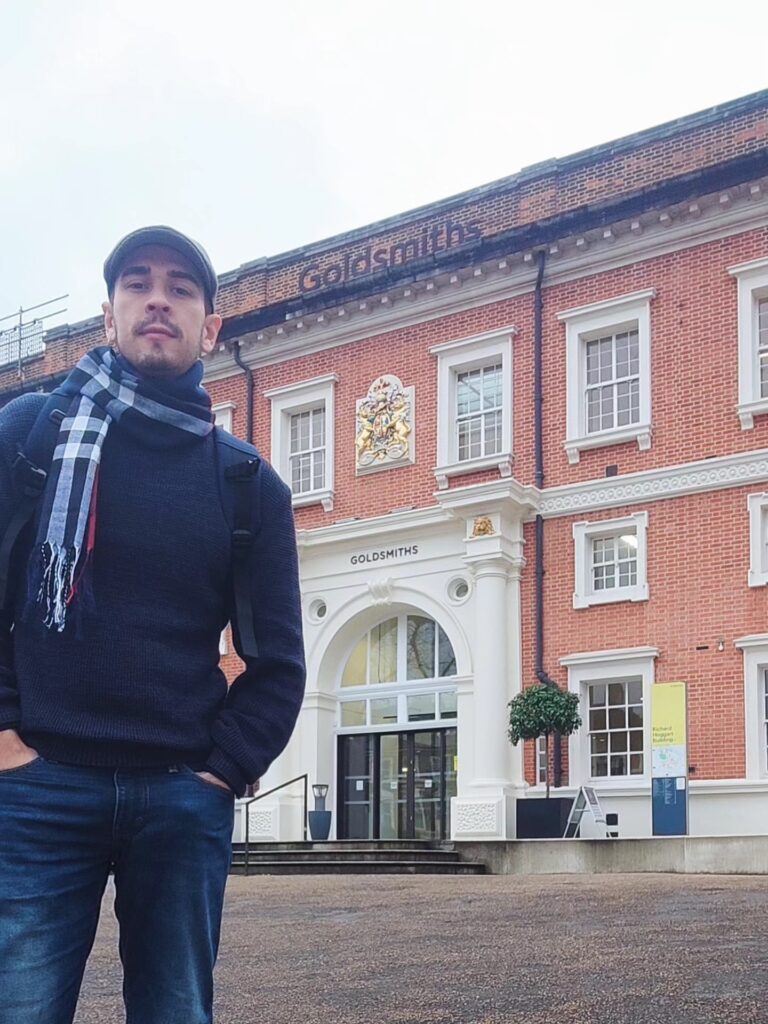 Kris H. Oliveira, coordinador de PrEP Sudamérica, frente al edificio principal de Goldsmiths. / Foto: Kris H. Oliveira